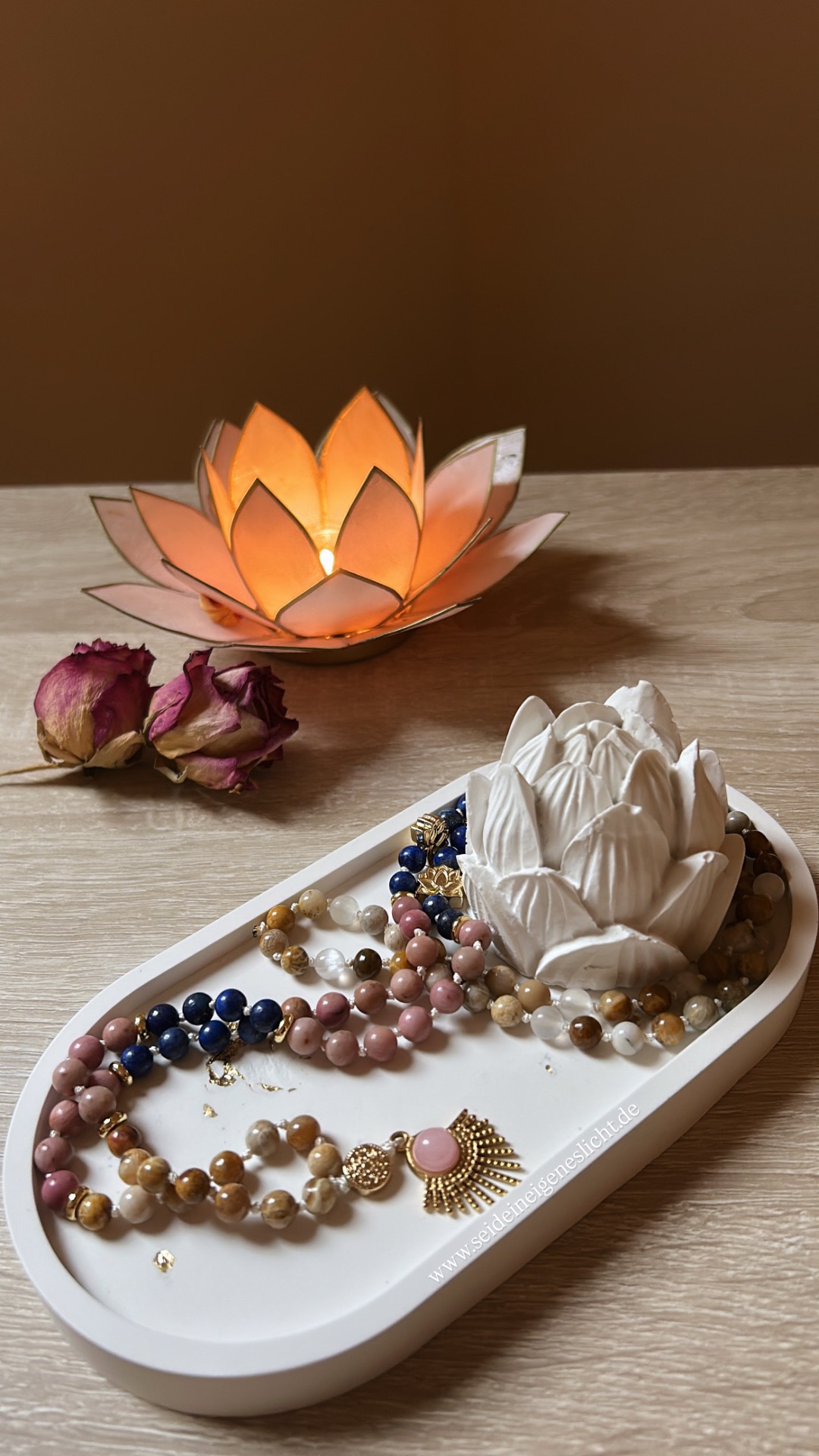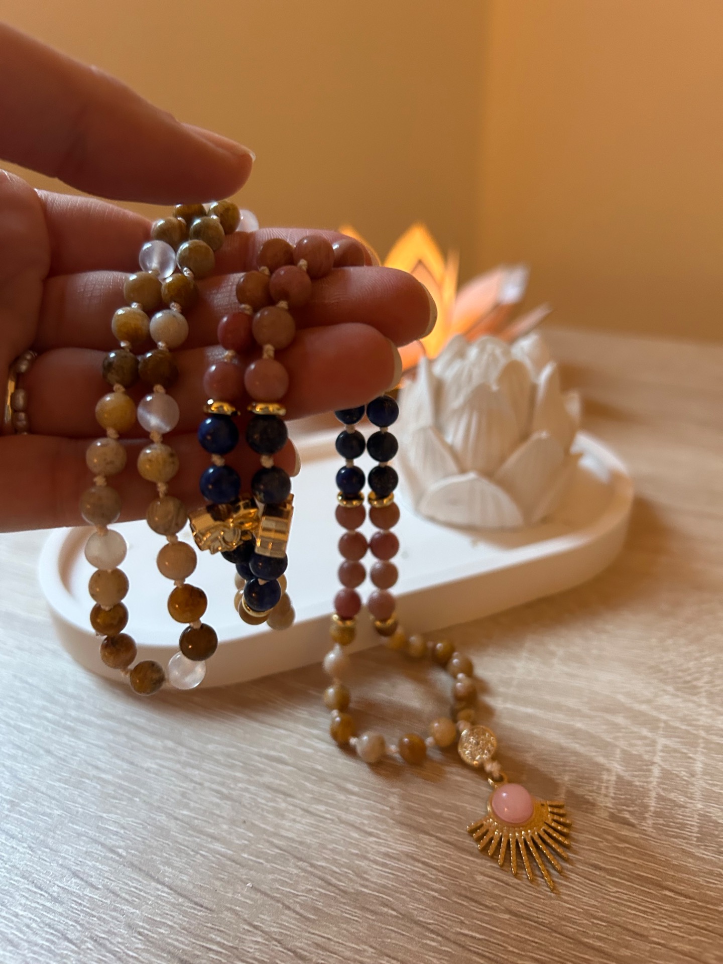 MALA aus Versteinerter Koralle, Lapislazuli, Rhodonit & Selenit
