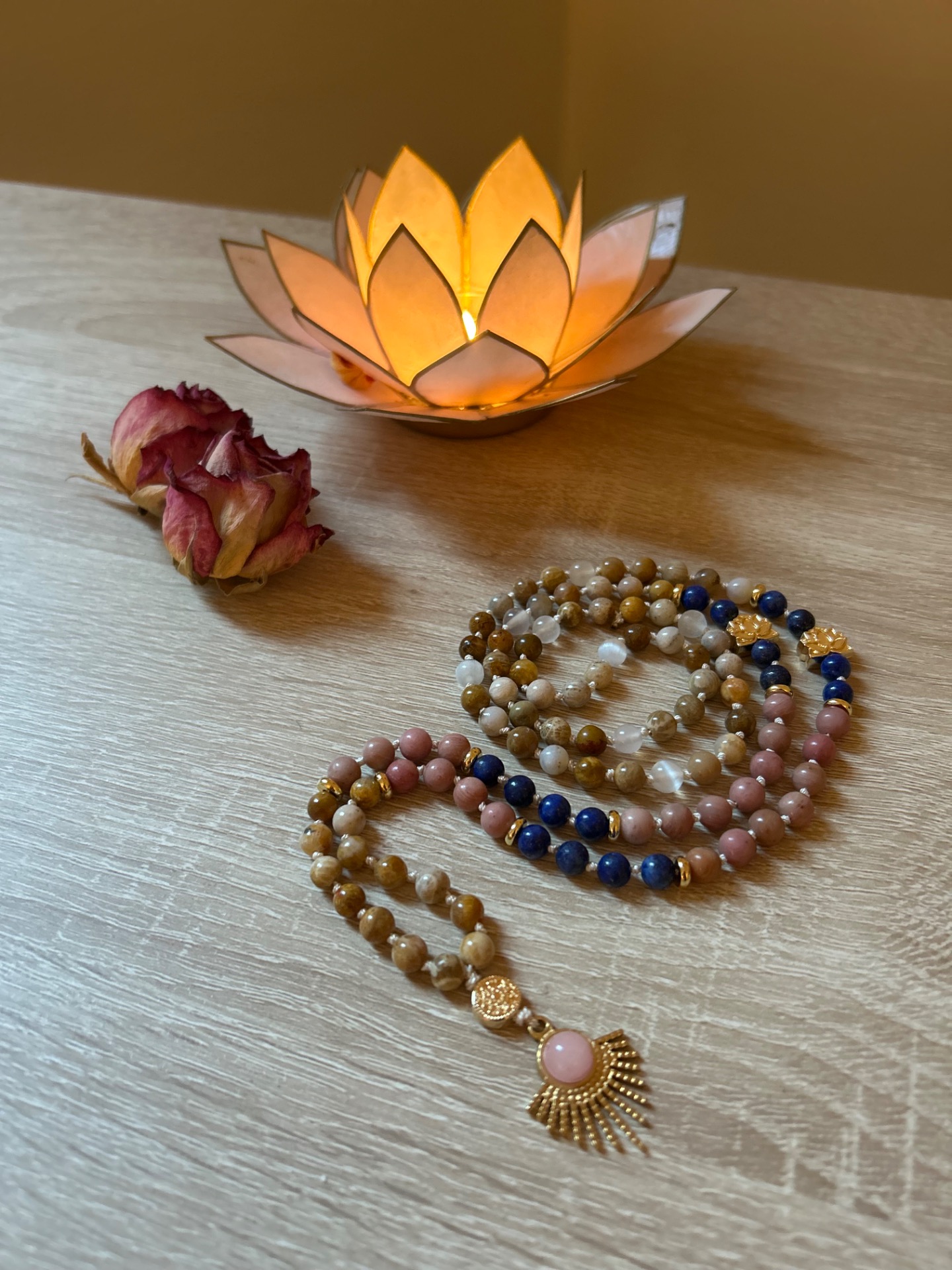 Die Malas. die durch mich entstehen, sind nicht nur Gebetsketten oder nur schön anzusehender Schmuck. Diese Malas haben eine Seele. Sie sind treue und liebevolle Begleiterin, die dich unterstützen auf deinem Weg zur Dir selbst.